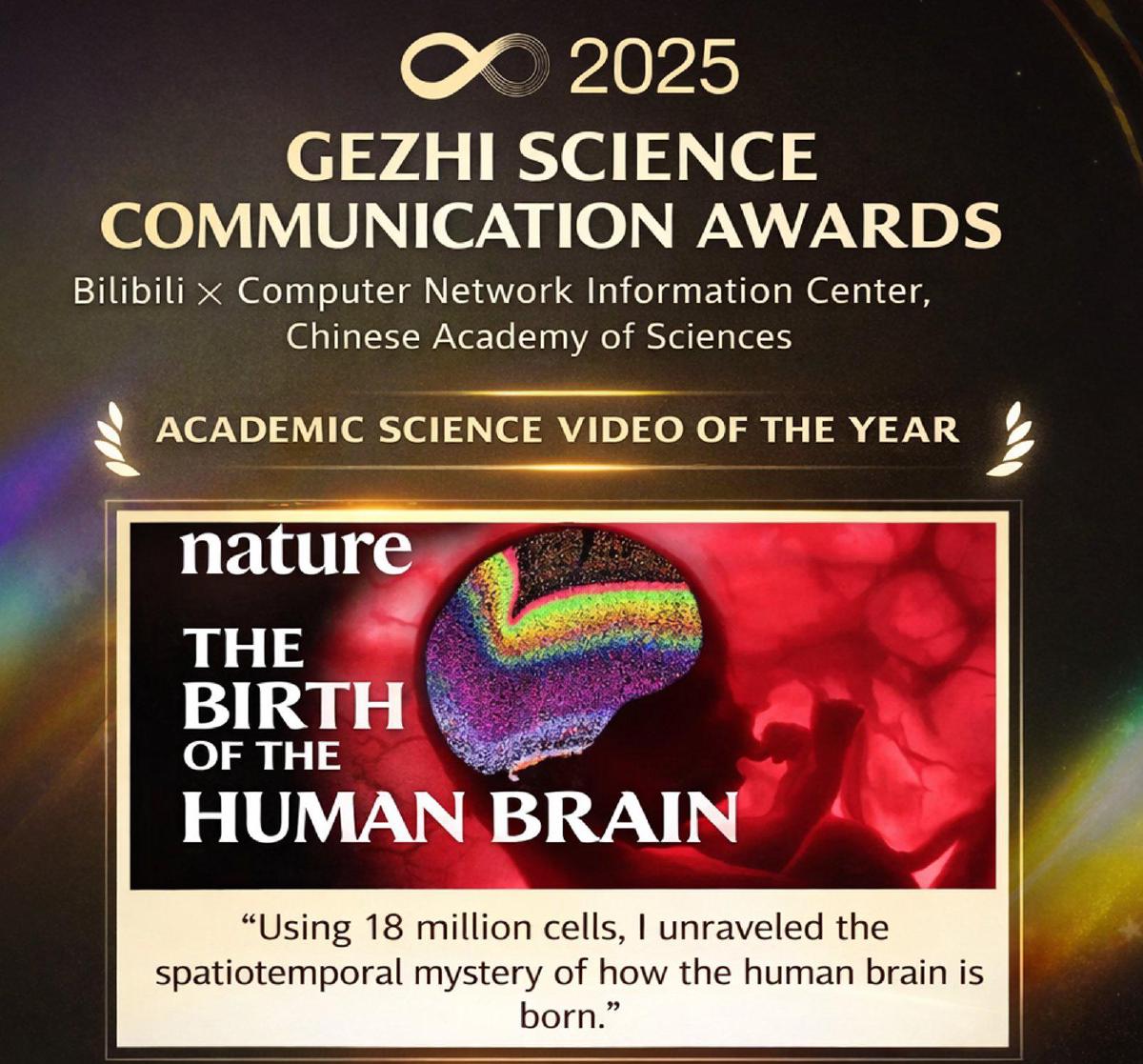 I’m happy to share that a video I created about our Nature paper on human brain development received the 2025 Academic Science Video of the Year Award at the Gezhi Science Communication Awards.
